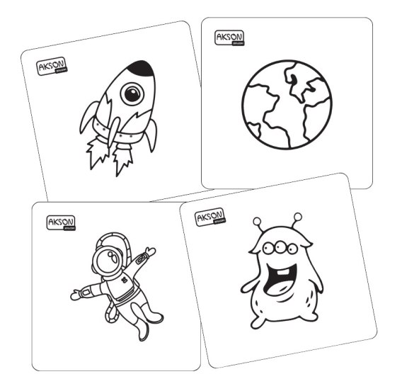 Zestaw zawiera 20 kart. Na kartach znajdziesz grafikę związaną z tematyką kosmosu znajdującą się również na innych naszych produktach.