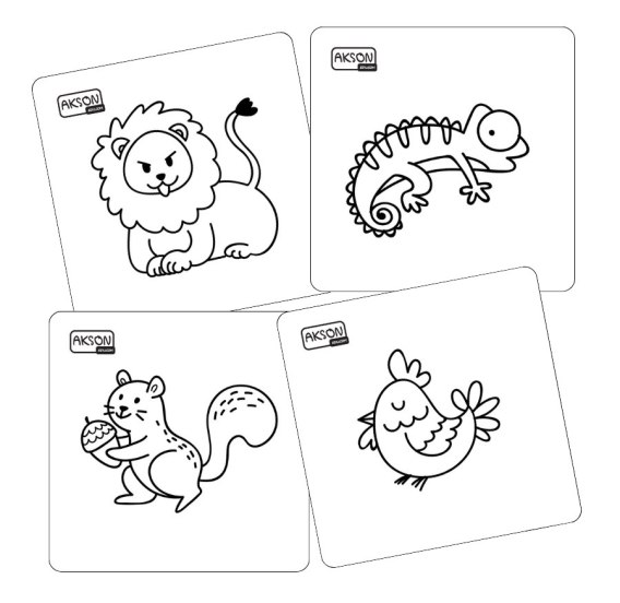 Zestaw zawiera 20 kart. Na kartach znajdziesz grafikę zwierząt znajdującą się również na innych naszych produktach.