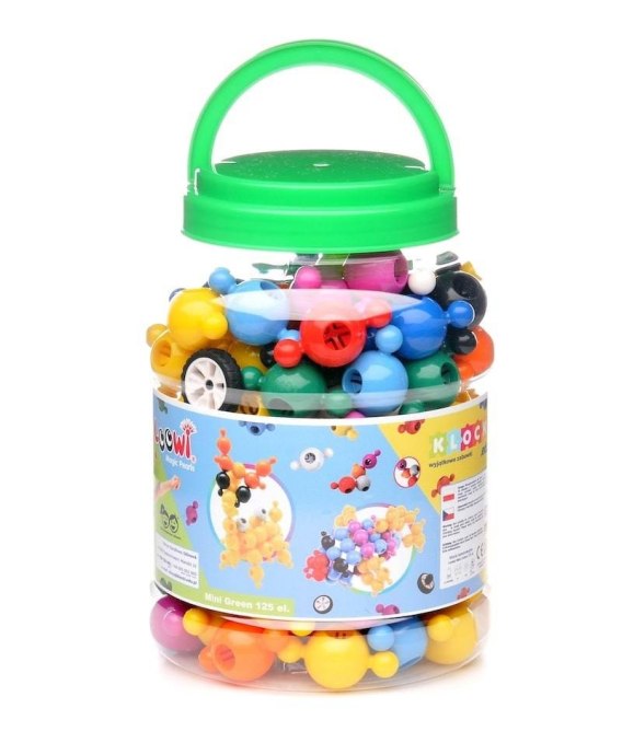 - Całość w zamykanym pojemniku w formie słoika z rączką - nie tylko chroni klocki, ale też uczy porządku i odpowiedzialności, zamieniając sprzątanie w część zabawy,