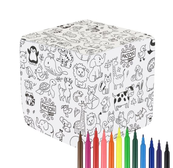 Kostka o wielkości 20 cm to miękka, wysokoelastyczna pianka oraz zdejmowany pokrowiec, który możesz wielokrotnie kolorować. Dzięki możliwości łatwego spierania kolorów kostka może służyć na wiele sposób i przy wielu okazjach.