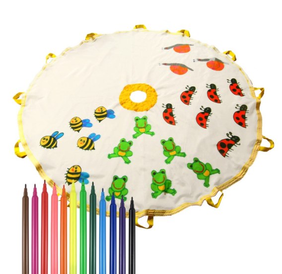 Dodatkowo, chusta kreatywna zachowuje wszystkie standardowe funkcje spadochronu animacyjnego: rozwija refleks, koordynację i umożliwia radosną zabawę w ruchu i grupie.