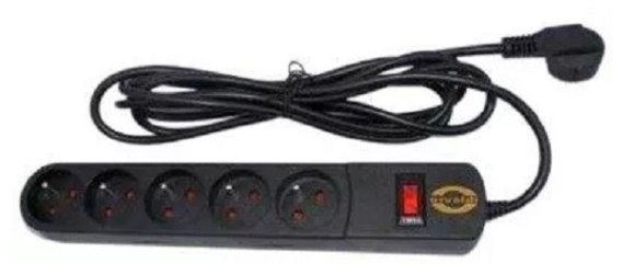 Listwa zasilająca wyposażona w 5 gniazd sieciowych oraz kabel o długości 1.5 metra.