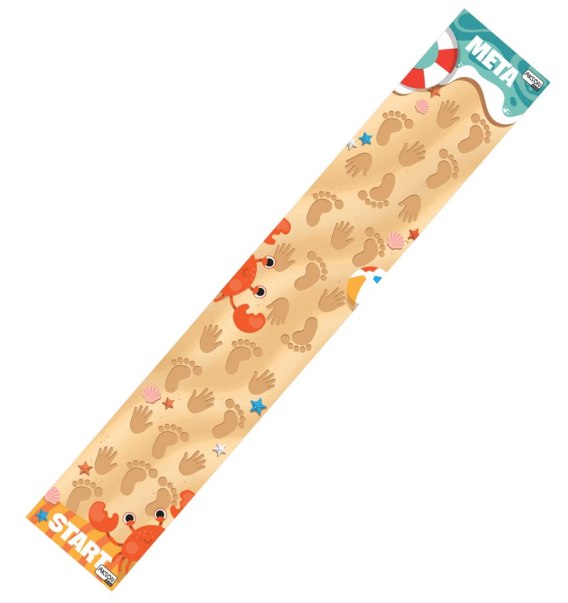 Rozmiar maty to 50x300 cm. Mata posiada pola "META" i "START".