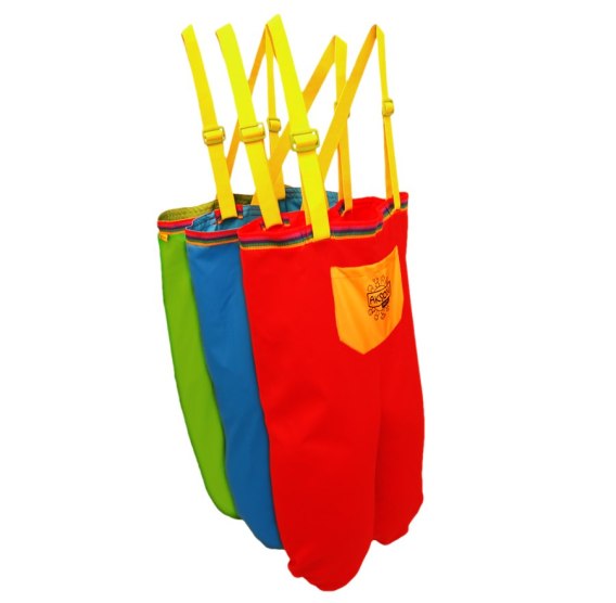 Spodnie Animacyjne Kolumna Akson to zestaw trzech, kolorowych par spodni, połączonych ze sobą na stałe, mocnym, trwałym szwem. Spodnie wykonane są z wytrzymałego, wodoodpornego materiału, łatwego do utrzymania w czystości, całość obszyta jest dodatkowo taśmą wzmacniającą.  Z przodu, znajduje się kieszonka, która również otwiera nowe możliwości w zabawie.