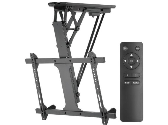 Informacje dodatkowe: Maksymalne obciążenie: aż 35 kg, Regulacja pochylenia od 0° do -75°, Minimalny/Maksymalny rozstaw w poziomie: 200/600 mm, Minimalny/Maksymalny rozstaw w pionie: 100/400 mm, Możliwość poziomowania telewizora po zamontowaniu +2/-2°, Solidna, metalowa konstrukcja, bardzo łatwy montaż, System maskowania przewodów, Wysoka jakość wykonania, Lakierowanie proszkowe (dostępny kolor czarny), Zasilanie: AC 100 ~ 240 V, 50/60 Hz, Zasilanie pilota: 2x bateria AAA (brak w zestawie), Długość kabla zasilającego: 1,5 metra, Przeznaczony dla TV 32" - 70", Pilot zdalnego sterowania z pamięcią dwóch wybranych pozycji