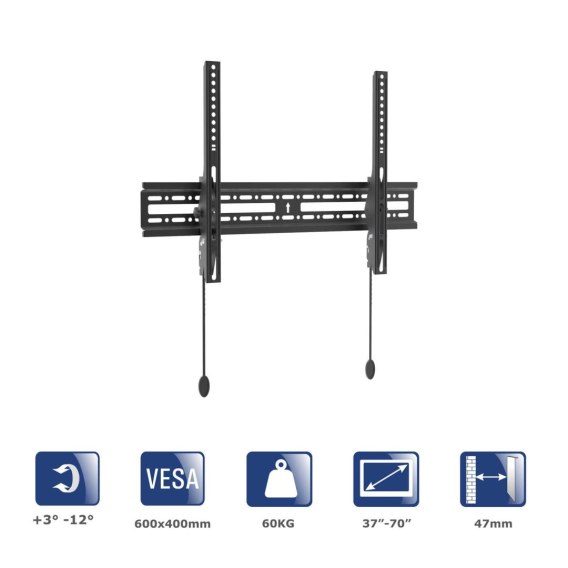 Informacje dodatkowe: Pochylenie: +3° / -12°, Dystans od ściany: 47 mm, Wielkość ekranu: 37", 40", 42", 43", 45", 52", 55", 60", 65", 70"