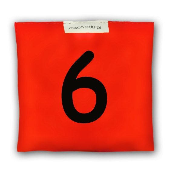 Woreczek gimnastyczny z nadrukiem z cyferką 6, szkolny Akson to wyjątkowa pomoc w czasie zabaw animacyjnych, dydaktycznych i zajęć korekcyjno-ruchowych.