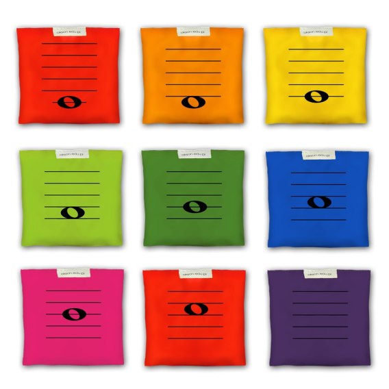 Nadruk na woreczkach stwarza nowe możliwości w zabawie, pozwala urozmaicić zajęcia gimnastyczne pamiętając jak ważna i praktyczna jest nauka poprzez zabawę